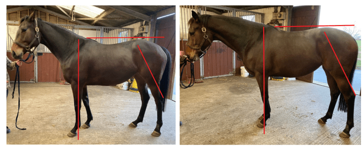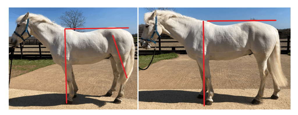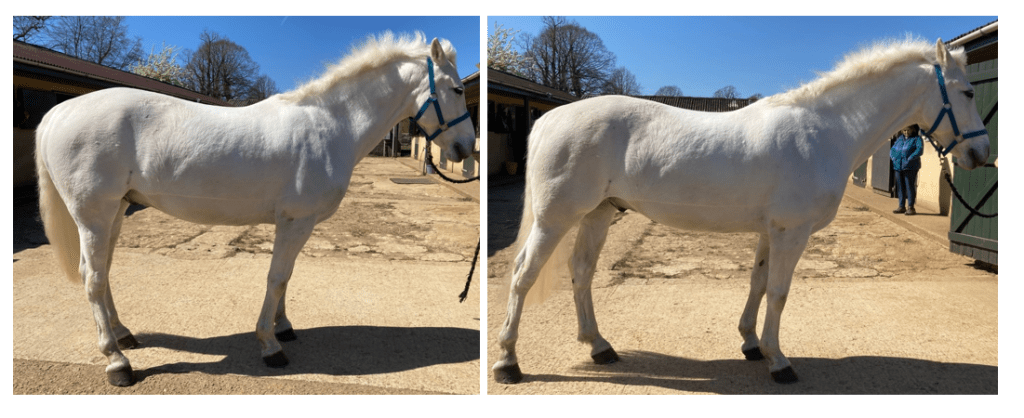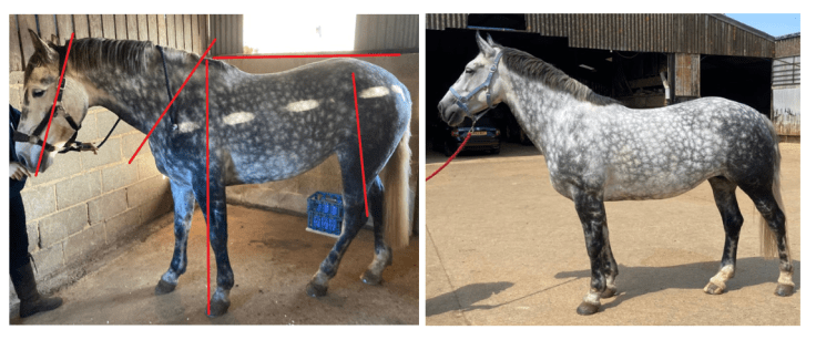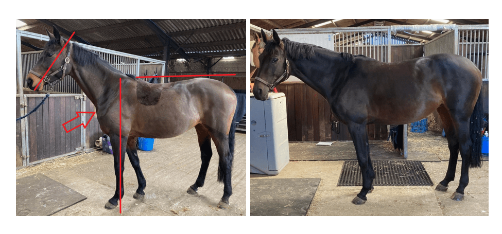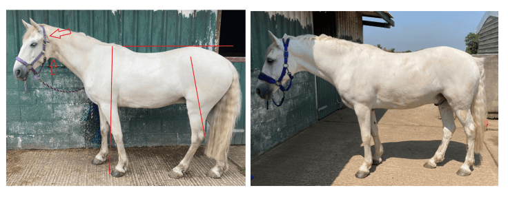 Please see pictures below of some of the horses I have been treating, these are not professional photos. They are horses standing in there natural posture (no asking them to stand square) so we can see how they will naturally rebalance and find new stability to offer better use of there body.