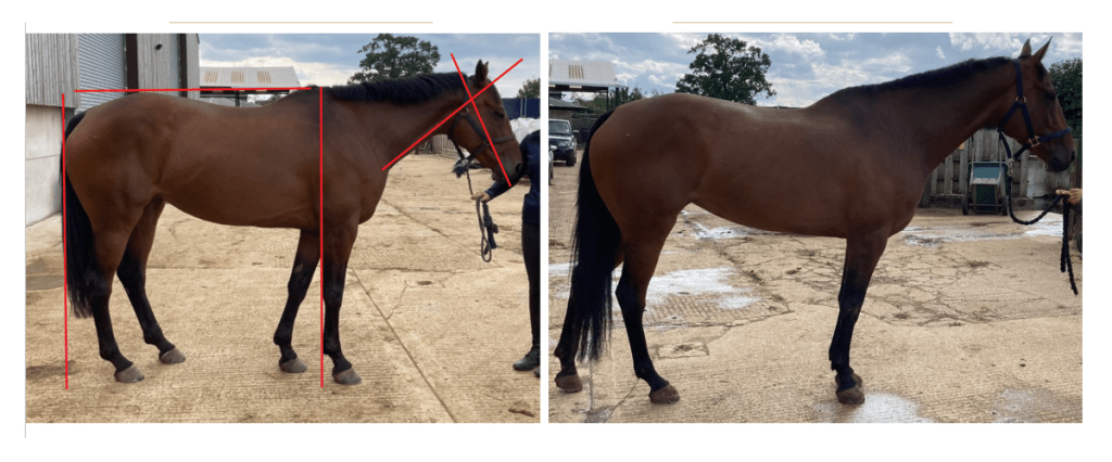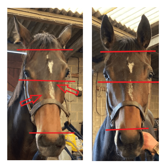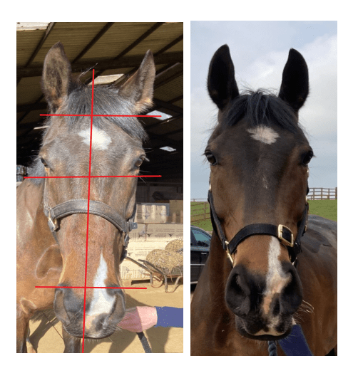Ex Race horse who has run many races, as I have decompressed his head you can see how broader he has becomeAs his head has decompressed you can see how dis posture and balance are so much better